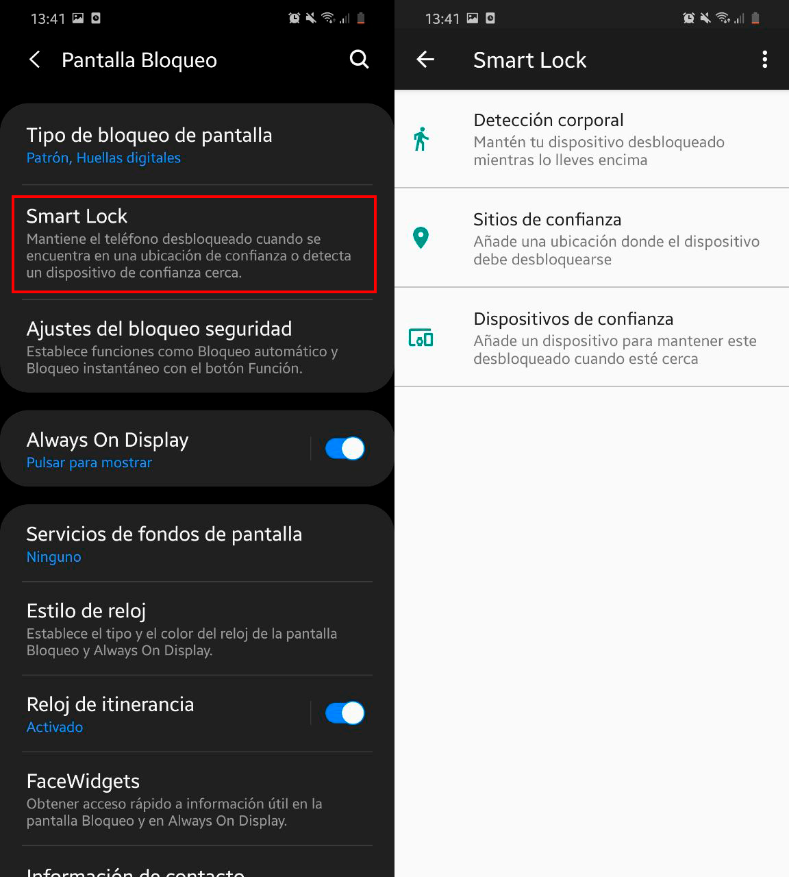 Tan solo tienes que buscar esta opción en los ajustes de tu dispositivo y configurarla. Puedes seleccionar diferentes ubicaciones como tu casa o el trabajo. Cuando el dispositivo detecte que está en una ubicación segura no te pedirá el patrón o el método de desbloqueo que tengas. También puedes seleccionar dispositivos seguros, como por ejemplo una pulsera inteligente o un altavoz. Cuando el terminal esté conectado a estos dispositivos no te pedirá el método de desbloqueo.