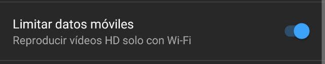 Desde los ajustes puedes limitar la reproducción de vídeos en HD solo cuando el Wi-Fi esté activo. No te impedirá gastar datos, pero la reproducción será en baja calidad para que gastes los menos posibles.