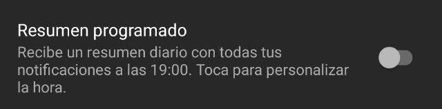 Desde los ajustes de YouTube puedes configurar una hora del día para que la aplicación te haga un resumen de todas las notificaciones que debía enviarte a lo largo del día. Si normalmente utilizas el móvil para ver YouTube a las 20:00, podrás configurar que este resumen llegue a esa hora. Es una opción muy útil si utilizas estas notificaciones para ver los nuevos vídeos de sus suscripciones pero no puedes estar pendiente durante todo el día. Puedes encontrar esta opción en el apartado de ‘Notificaciones’ de los ajustes.