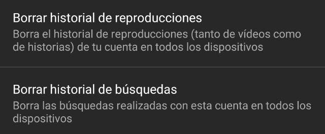 Esta configuración puede venirte muy bien si quieres hacer que un vídeo desaparezca de tu historial de reproducciones. Desde el apartado de ‘Historial y privacidad’ de los ajustes puedes borrar el historial de una forma muy sencilla. Desde esta sección también puedes deshacerte de tu historial de búsquedas de un plumazo.