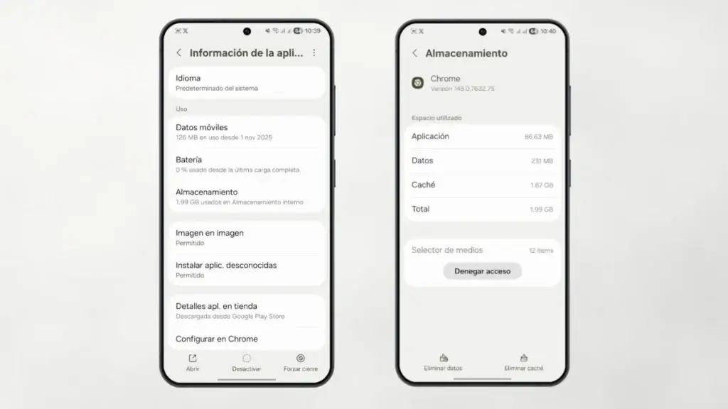 Cómo limpiarla: En Android, el proceso es muy directo: ve a Configuración > Aplicaciones, elige las que más usas (sobre todo las redes sociales), toca en «Almacenamiento» y luego selecciona «Borrar caché». En el caso de los iPhone, el sistema gestiona la caché de forma un poco más cerrada, pero puedes lograr el mismo efecto desinstalando la aplicación pesada y volviéndola a descargar desde la App Store; entrará completamente limpia.