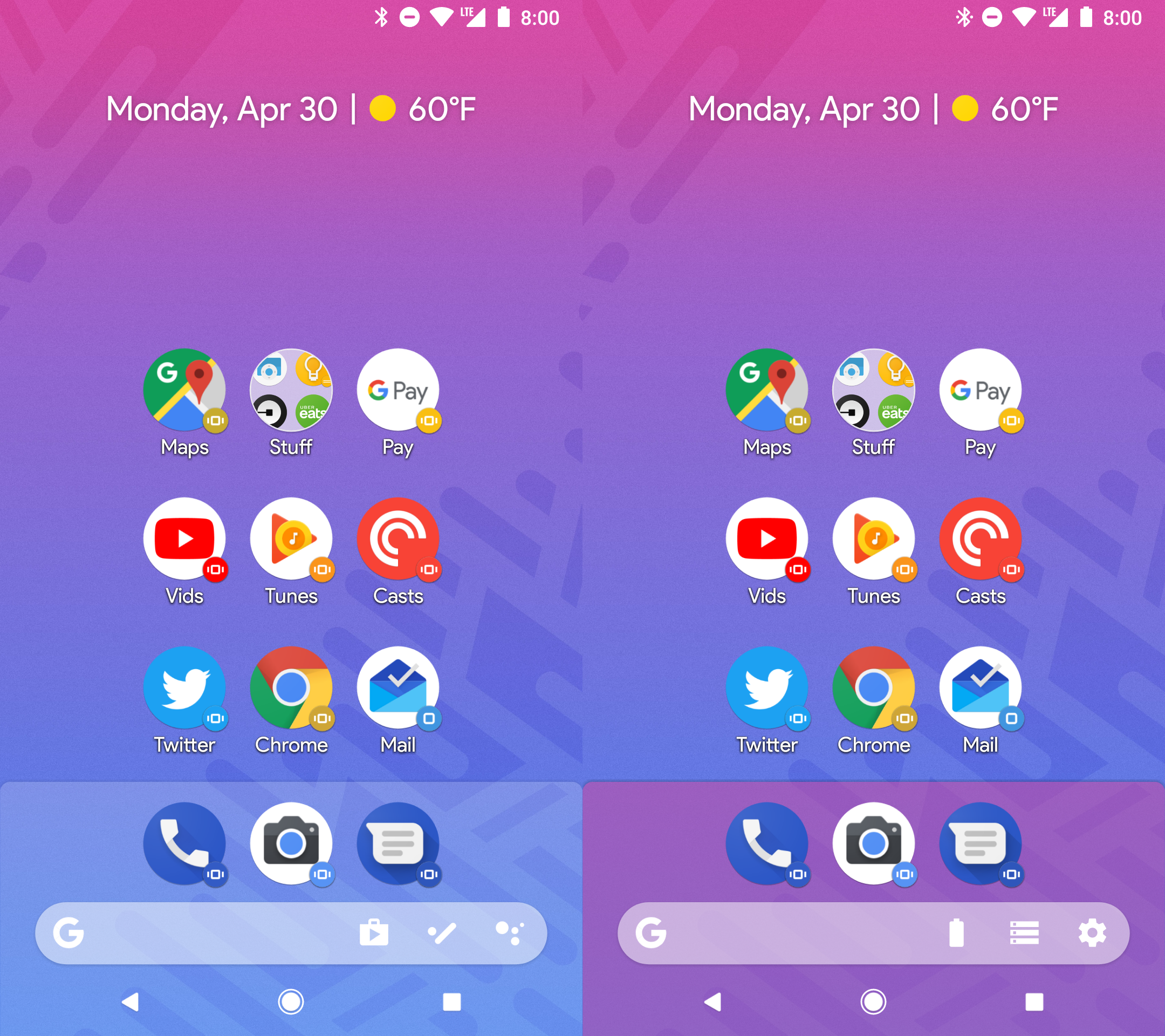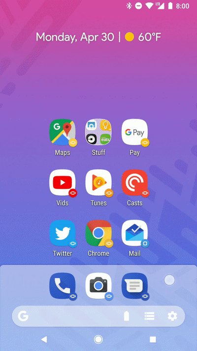 La principal novedad es el nuevo dock de Android P que podemos seleccionar desde los ajustes. Esté cuenta con un aire redondeado y novedades en la barra de Google. Si ya eres usuario de Action Launcher y no quieres este estilo de Android P, todavía puedes seleccionar otros diseños desde los ajustes de la aplicación.