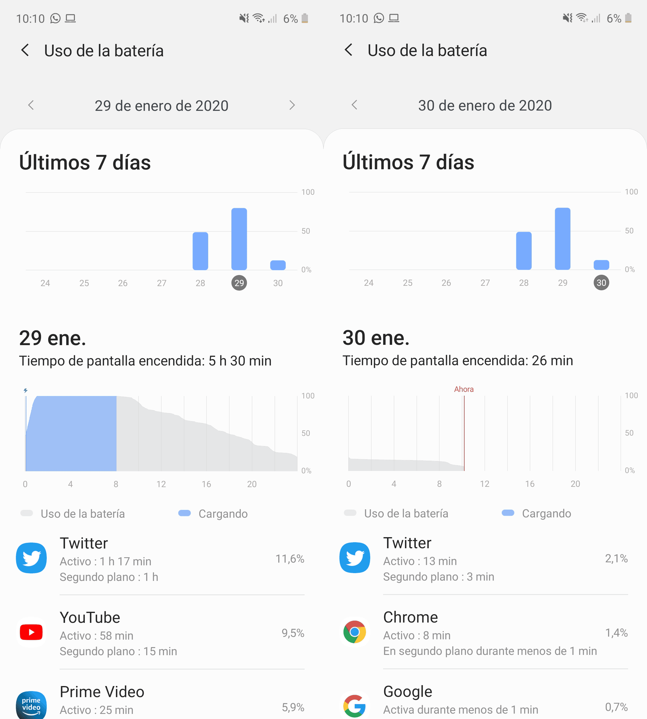 Hace unos años, tener un teléfono con 4.000 mAh de batería era una locura, pero hoy en día, podríamos decir que es la capacidad más estandarizada del mercado. Este Samsung Galaxy A51 nos permitirá utilizarla durante todo el día sin muchos problemas para llegar a la noche sin tener que pasar por el cargador. Eso sí, si lo que os interesan son las horas de pantalla, nosotros hemos rondado las 5 horas y 30 minutos, más o menos, tanto en un solo día, como en día y medio desde que desconectamos el teléfono.