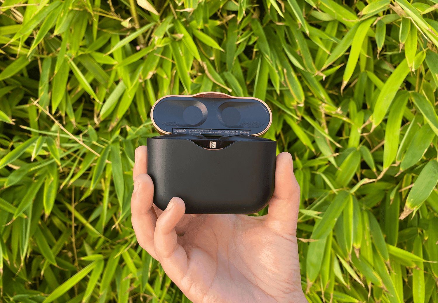 Varios compañeros del sector coincidimos: el estuche de estos auriculares es algo más grande de lo normal. No llega a ser incómodo y cabe perfectamente en cualquier bolsillo, pero es más grande que el resto, es una realidad. ¿Cómo justifica Sony este tamaño? Incluyendo 3 cargas completas para los auriculares. Más adelante hablaremos de este aspecto, pues probablemente, estamos ante una de las mejores autonomías en auriculares TWS de todo el mercado.