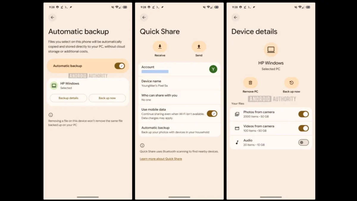 La función aparece integrada en los ajustes de Quick Share y su descripción no da rodeos: hacer copias de seguridad de tus fotos con los dispositivos de tu hogar. El sistema funcionaría de forma local, sin necesidad de conexión a internet para la transferencia, aunque sí requiere que ambos dispositivos estén vinculados a la misma cuenta de Google. Un detalle que muchos agradecerán: si borras un archivo del móvil, la copia en el PC se queda donde está. Que es exactamente lo que uno espera cuando libera espacio.
