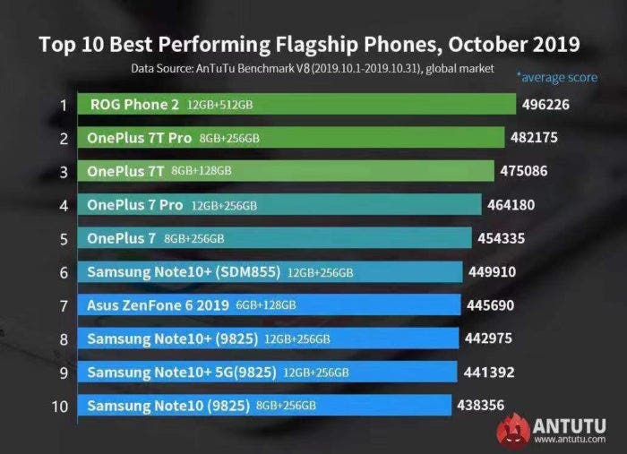 El resto de terminales que conforman la lista llegan en el siguiente orden: OnePlus 7, Samsung Galaxy Note 10+, Asus ZenFone 6, Samsung Note 10 +,Samsung Note 10 + 5G y Samsung Note 10. Vemos un claro dominio de los OnePlus seguido de los nuevos Samsung y con la novedad de los últimos Asus. Veremos cómo cambia la lista el mes que viene.