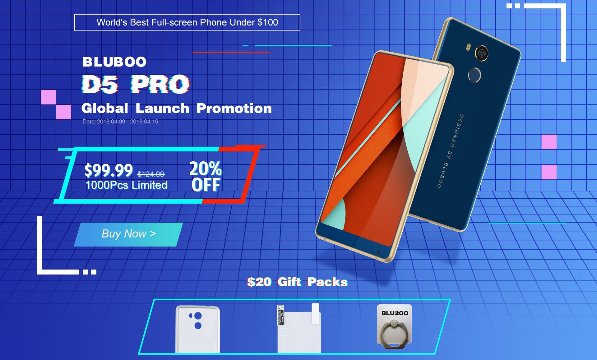 Gracias a la promoción de Bluboo podemos comprar este D5 Pro por solo 82 euros con envío gratuito y un pack de regalos para los 1.000 primeros en realizar la compra. Estamos ante una de las mejores ofertas para terminales baratos del mercado chino, ya que es muy complicado encontrar esta calidad con un precio de 82 euros. Si eres de los más rápidos podrás llevarte una funda, un protector para la pantalla y un anillo para pegarlo en la parte trasera totalmente gratis. Además, el terminal está en stock, por lo que se enviará sin tener que esperar.