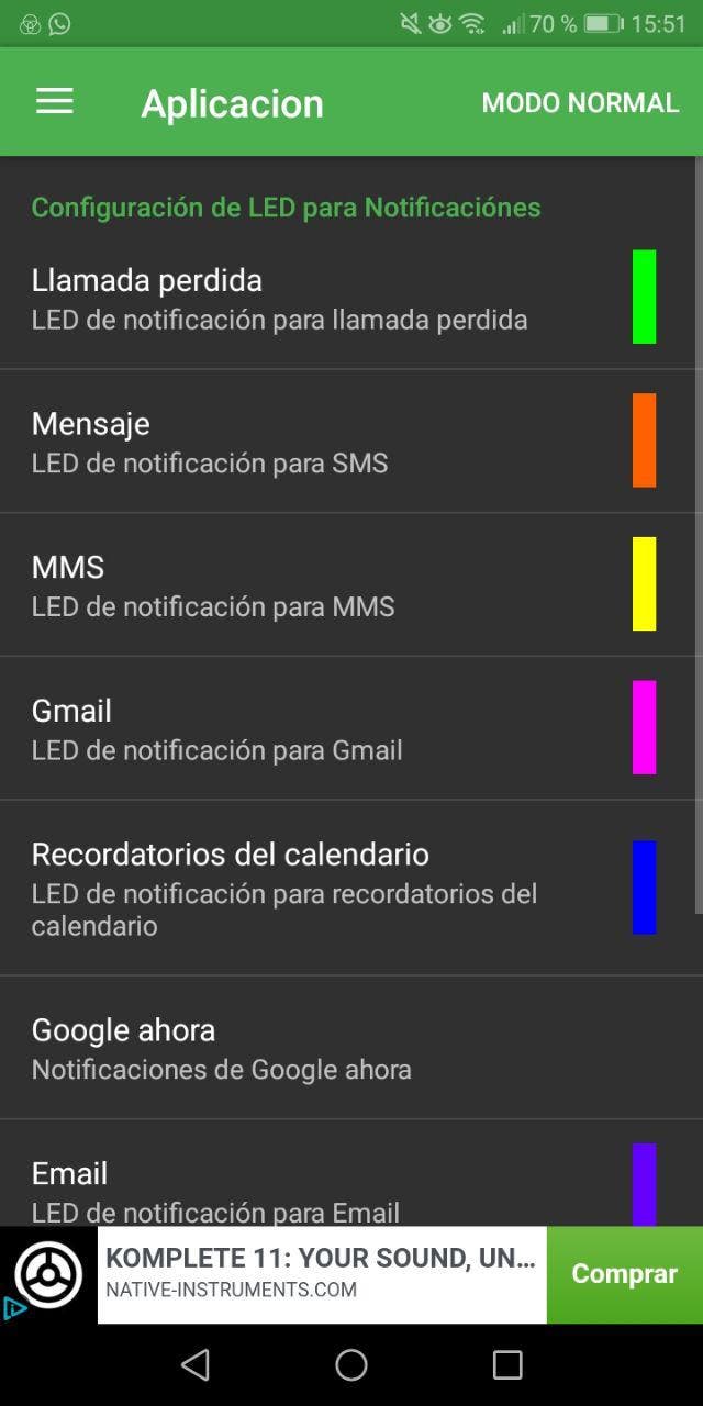 Si por algún casual, la aplicación en cuestión que hayáis configurado no muestra el LED de notificación configurado, tendréis que iros hasta los Ajustes de ésta y comprobar si existe algún apartado de Notificaciones para desactivar los avisos por LED. Algunas como WhatsApp o Telegram cuentan con un apartado propio, por lo que os recomendamos desactivarlo si queréis cambiar el color en la aplicación de Light Manager.