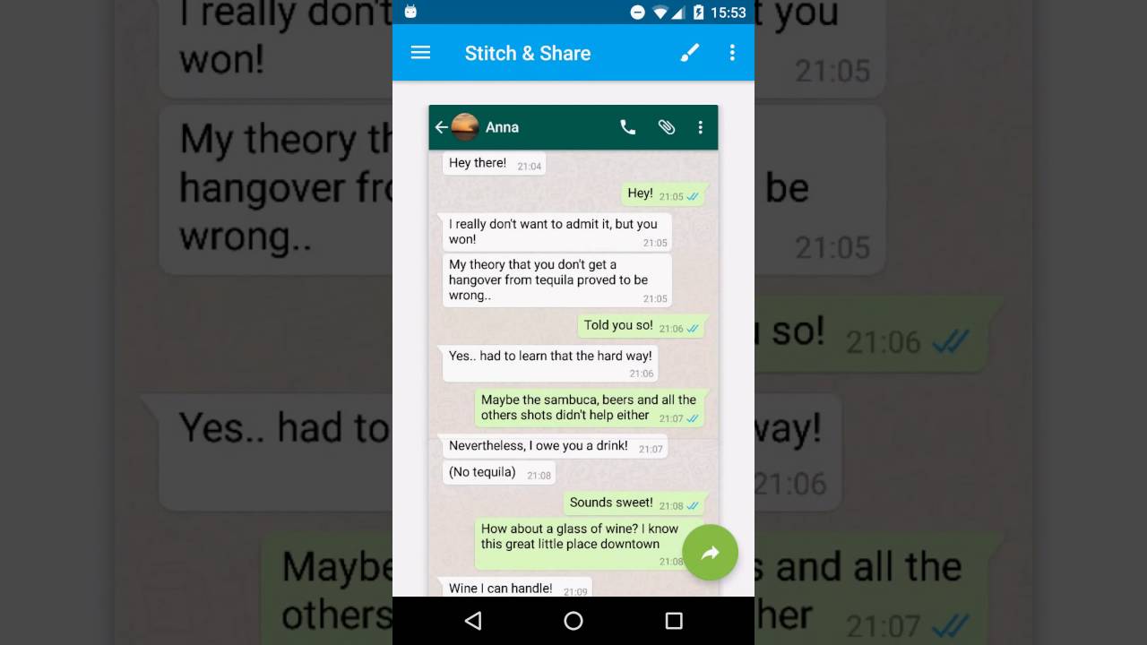 Hoy os dejamos con Sticth & Share una aplicación que a partir de ahora seguro que se une a la lista de aplicaciones imprescindibles de tu Android. Es una aplicación realmente sencilla, pero que nos ayuda a hacer capturas de pantalla unificadas, sin tener que hacer 4 o 5 a una sola conversación. La manera de usarla es realmente sencilla.