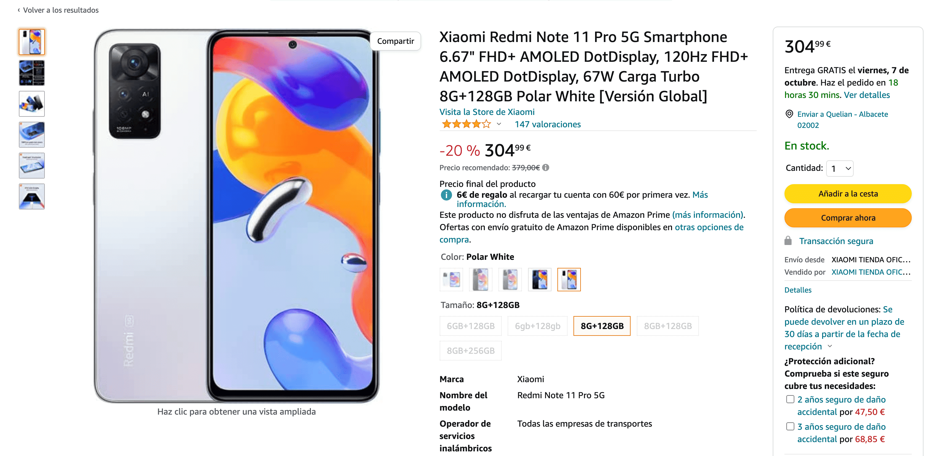 En estos momentos el Redmi Note 11 Pro se puede comprar en Amazon por 304 euros en su versión de 8 GB de RAM y 128 GB de almacenamiento interno. El PVP que marcaba justo antes de esta oferta es de 379 euros. Y según podemos ver en CamelCamelCamel.com sus ofertas no son comunes.