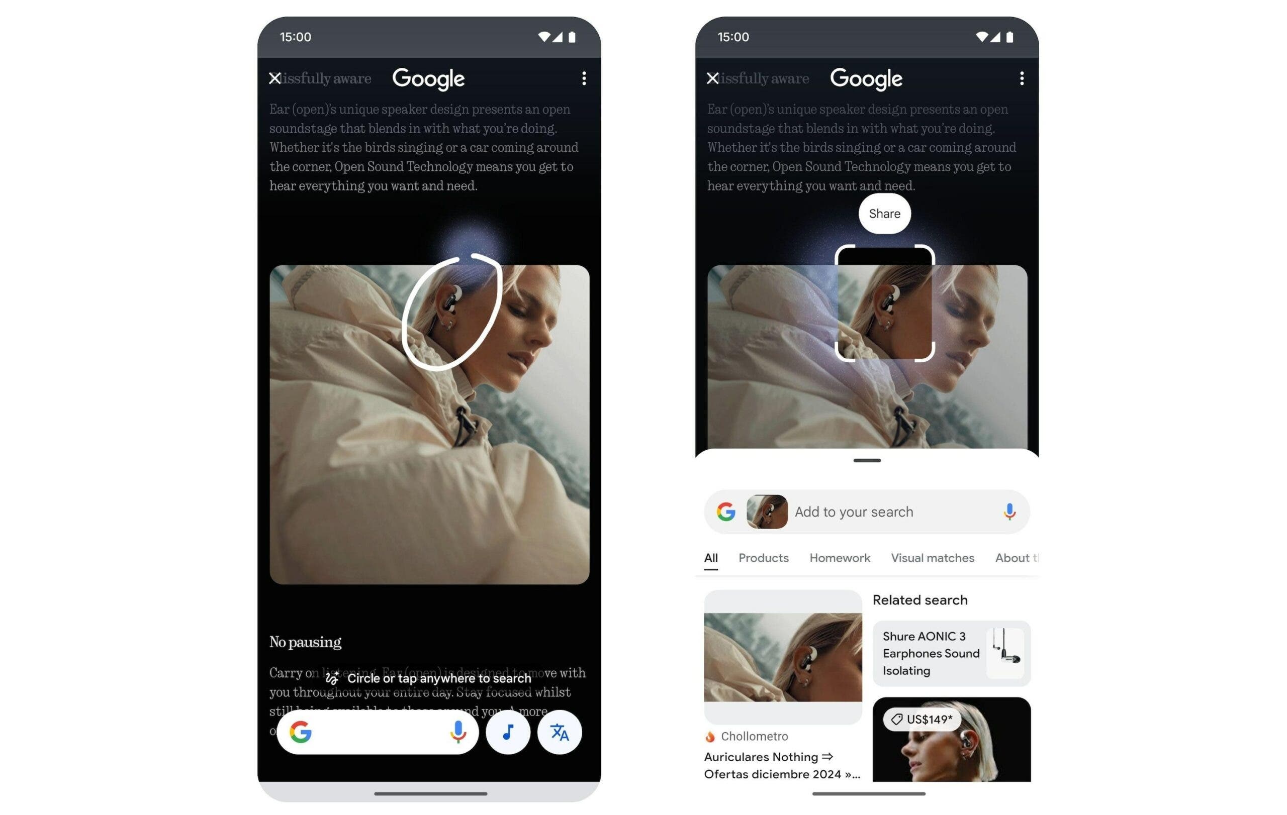 Hoy, finalmente, estos tres dispositivos de la marca a cargo de Carl Pei también se suman a la lista de equipos que pueden realizar la búsqueda circular, una función que se ha popularizado e integrado con otras herramientas para ofrecer una experiencia más completa. Por ejemplo, la traducción en tiempo real o la búsqueda de una canción específica. Poder obtener información con unos simples pasos sobre lo que tenemos frente a la pantalla es, sin duda, una ventaja sorprendente.