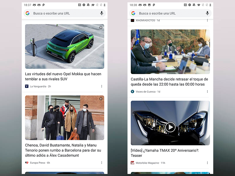 Los cambios que ha realizado la aplicación en su interfaz no son radicales, pero sí interesantes. Google Chrome ha cambiado la forma de su Discover para hacerlo más sencillo: ahora muestra imágenes mucho más grandes y obvia parte del encabezado de los artículos.