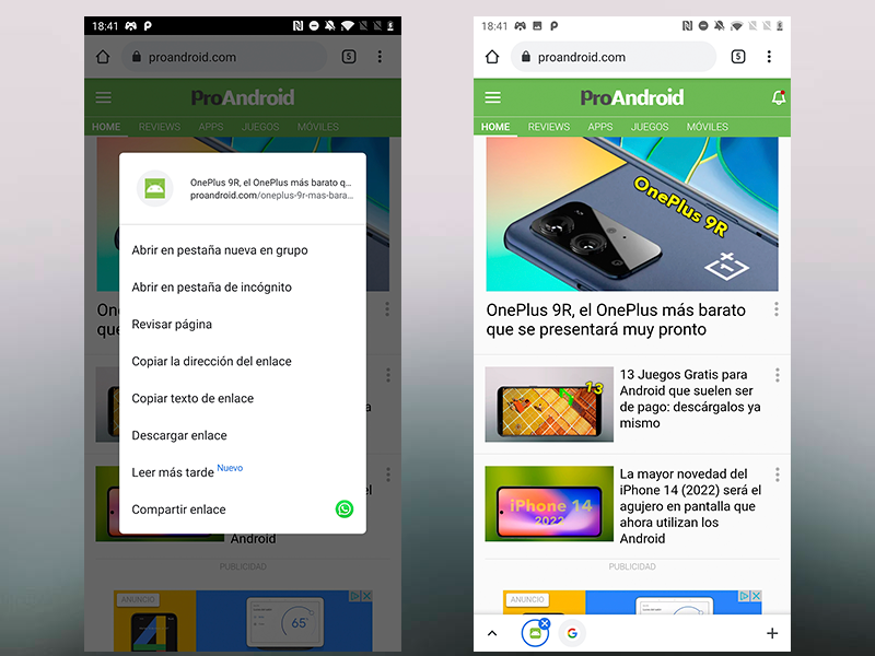 Con estos 3 sencillos pasos podrás tener la nueva función ‘Leer más tarde’ activa en Google Chrome. Su uso es muy sencillo, simplemente debes dejar pulsar el enlace de la noticia o la página que quieres leer después. Con este toque prolongado aparecerá una ventana flotante que te permite incluir este enlace a la lista de lectura.