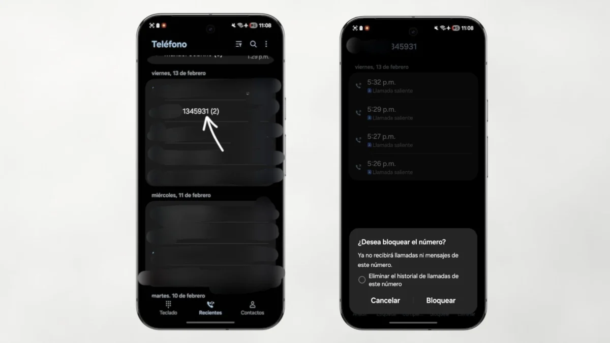 Cuando ya sabes exactamente qué número no para de llamarte, el método más rápido es bloquearlo desde el registro de llamadas: