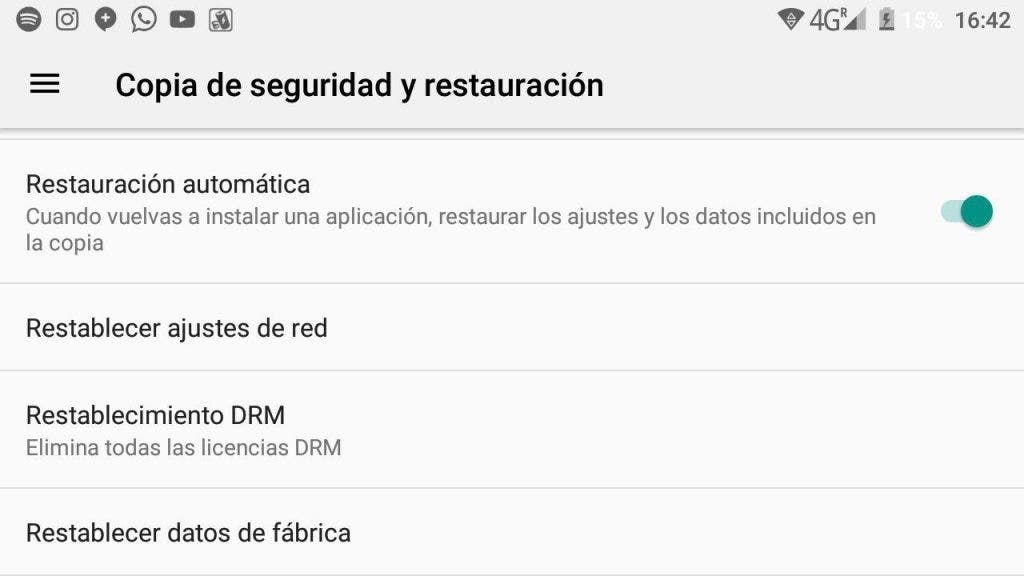 Lo primero que debes saber es que todos los archivos que tengas en tu móvil se borrarán. Aplicaciones, fotos, vídeos, archivos, datos y configuraciones, todo desaparecerá y pasarás a tener un móvil con la configuración inicial de Android. Tendrás que volver a introducir tus datos de Google y descargar las aplicaciones que quieras tener. Por este motivo te recomendamos que hagas una copia de seguridad de tus datos antes de restablecer el dispositivo. Esto lo puedes hacer con diferentes aplicaciones o simplemente copiando fotos, archivos y vídeos al ordenador con un cable.