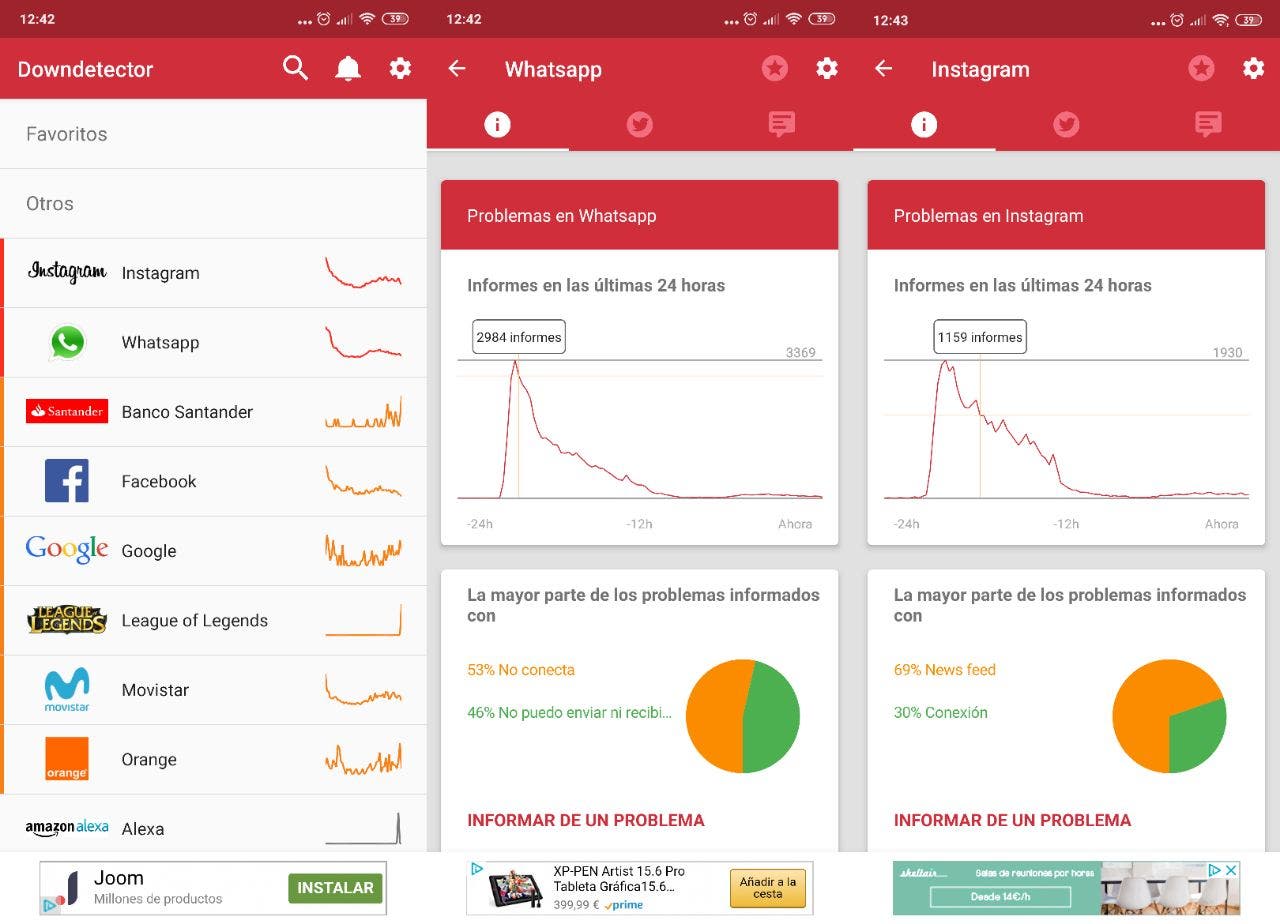 Cuando WhatsApp o una red social importante sufre problemas de conexión nosotros informamos sobre ello con un artículo. Hay diferentes fuentes, pero la mejor para saber si hay un problema en WhatsApp, Instagram o Facebook es Downdetector. Esta página ofrece una plataforma para que los usuarios informen sobre el funcionamiento del servicio. También es posible saber en qué parte del mundo se acentúa el problema.