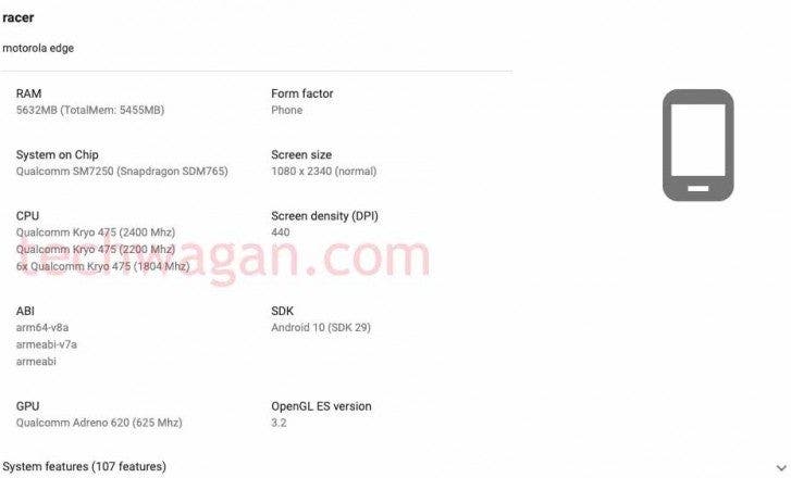 Gracias a Google Play Console podemos confirmar varias de las características que llegarán a este Motorola Edge. La compañía se dejará de procesadores antiguos o de gama media/baja. Este terminal se pondrá a la venta con un Qualcomm Snapdragon 765. Es el chip de gama media más potente del momento y fue anunciado hace unos pocos meses. Si un fabricante quiere hacer el mejor gama media en 2020, debe incluir este chip.