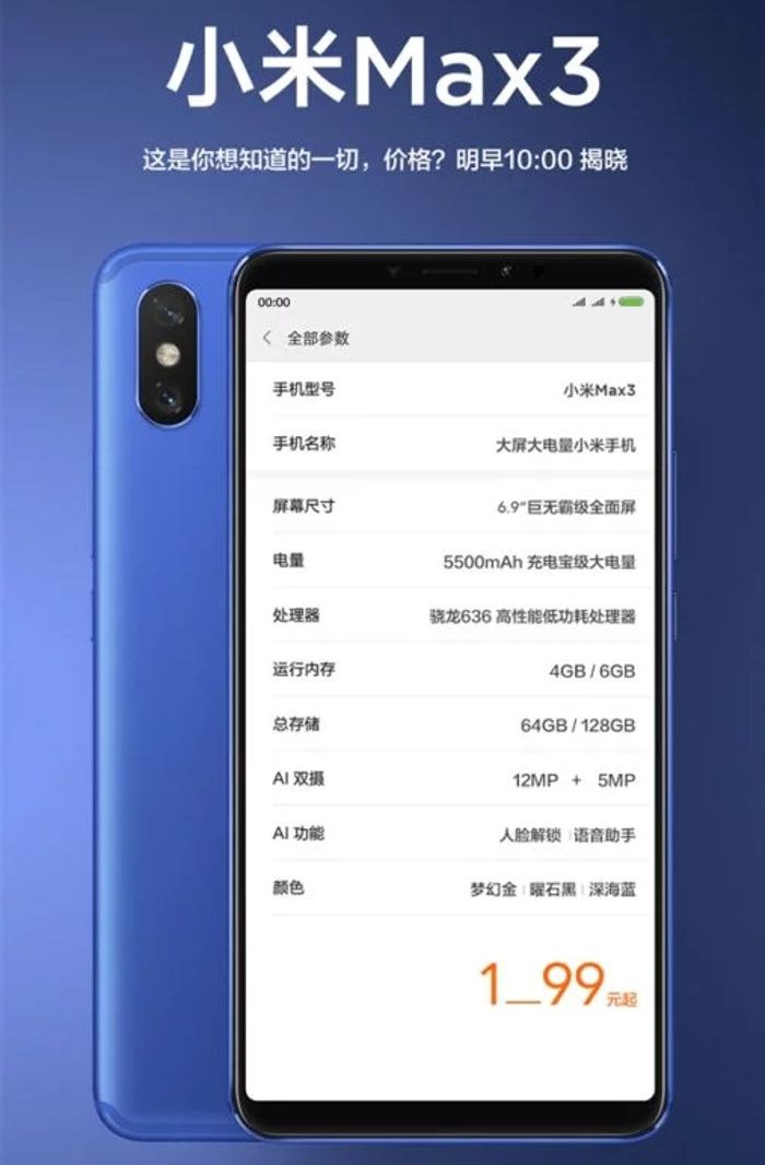 Ahora que ningún detalle se nos escapa de este Xiaomi Mi MAX 3, tenemos que esperar a que mañana la compañía decida mencionar los países en los que estará disponible y el precio. Un teaser ha revelado que el precio de la versión de 6/128 GB estará por debajo de los 2.000 yuanes, o lo que es lo mismo, unos 260 euros al cambio.
