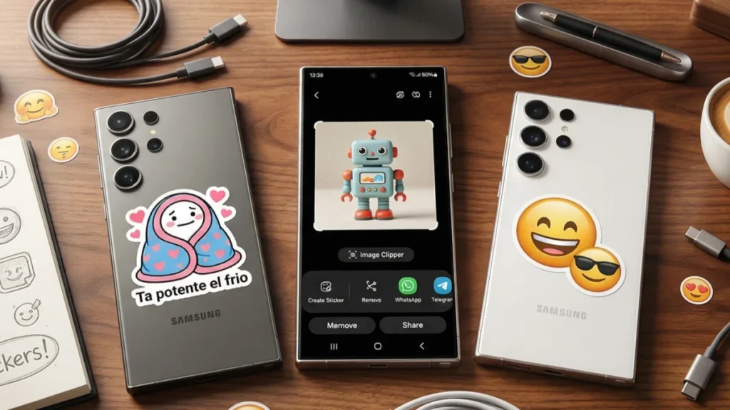 Si tienes un Samsung Galaxy con One UI relativamente reciente, probablemente llevas tiempo haciendo stickers a la vieja usanza: buscando packs en internet, instalando apps de terceros, recortando imágenes a mano… cuando en realidad tu móvil ya puede hacer todo eso solo. De hecho, tiene dos formas distintas de hacerlo, y ninguna requiere instalar absolutamente nada.