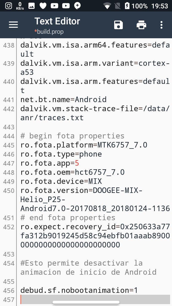 Para ello, tendremos que remitirnos a la famosa aplicación de BuildProp Editor. Una vez instalada, la abriremos y pulsaremos sobre el icono del lápiz correspondiente con la opción de Editar (antes de proceder os recomendamos que hagáis una copia de seguridad del archivo mencionado archivo por si se produce algún tipo de error durante el reinicio del sistema). Acto seguido, añadiremos en cualquier parte del archivo la linea de comando debug.sf.nobootanimation=1. A modo de recomendación, os aconsejamos que añadáis un comentario con la función de la linea de comando en concreto, el cual tendréis que escribir precedido de una almohadilla (por ejemplo, #Esto permite desactivar la animación de inicio de Android). Tras haber añadido ambas, guardaremos el archivo en la opción correspondiente y reiniciaremos el smartphone o tablet por completo.