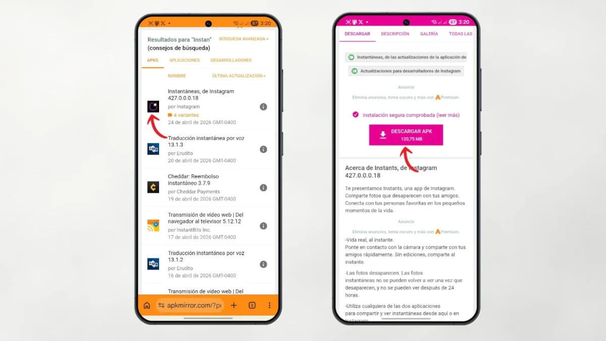 Los APK son el equivalente a los archivos .exe de Windows: el paquete de instalación de la aplicación, que puedes descargar e instalar directamente. Para hacerlo de forma segura, lo mejor es recurrir a repositorios de confianza como APKMirror o Uptodown, que verifican la autenticidad de los archivos.
