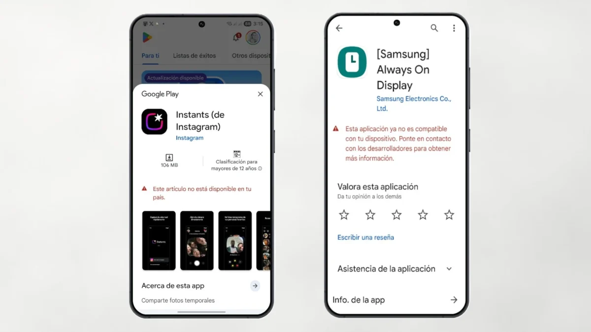 También existe la posibilidad de que la incompatibilidad sea por región. Hay aplicaciones que los desarrolladores restringen a ciertos países, y si intentas instalar una no disponible en España verás exactamente el mismo mensaje.
