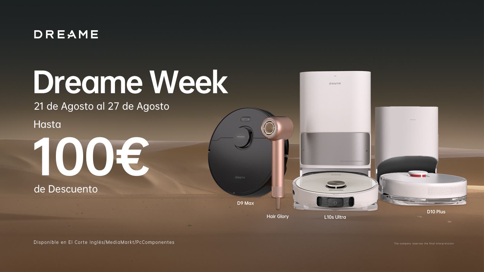 Dreame ha decidido alegrar el final del verano a todos los usuarios que estén en búsqueda de alguno de sus productos. La compañía está celebrando la Dreame Week con ofertas en sus principales productos. La mayoría han fijado su precio mínimo histórico, por lo que se consolida como una buena oportunidad para comprarlos. Además, están disponibles en los principales canales de venta en España: El Corte Inglés, MediaMarkt y PcComponentes.
