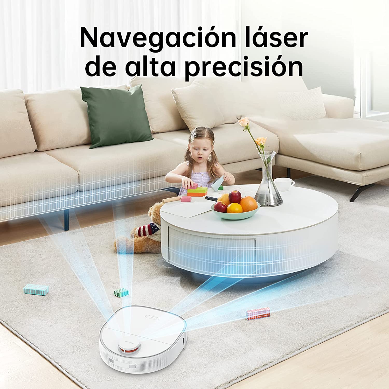 No hace falta decir que sus sensores son capaces de mapear tu casa a la perfección y limpiar por habitaciones. Pero gracias a los sensores Lidar de la parte superior también detecta pequeños obstáculos cuando está limpiando.