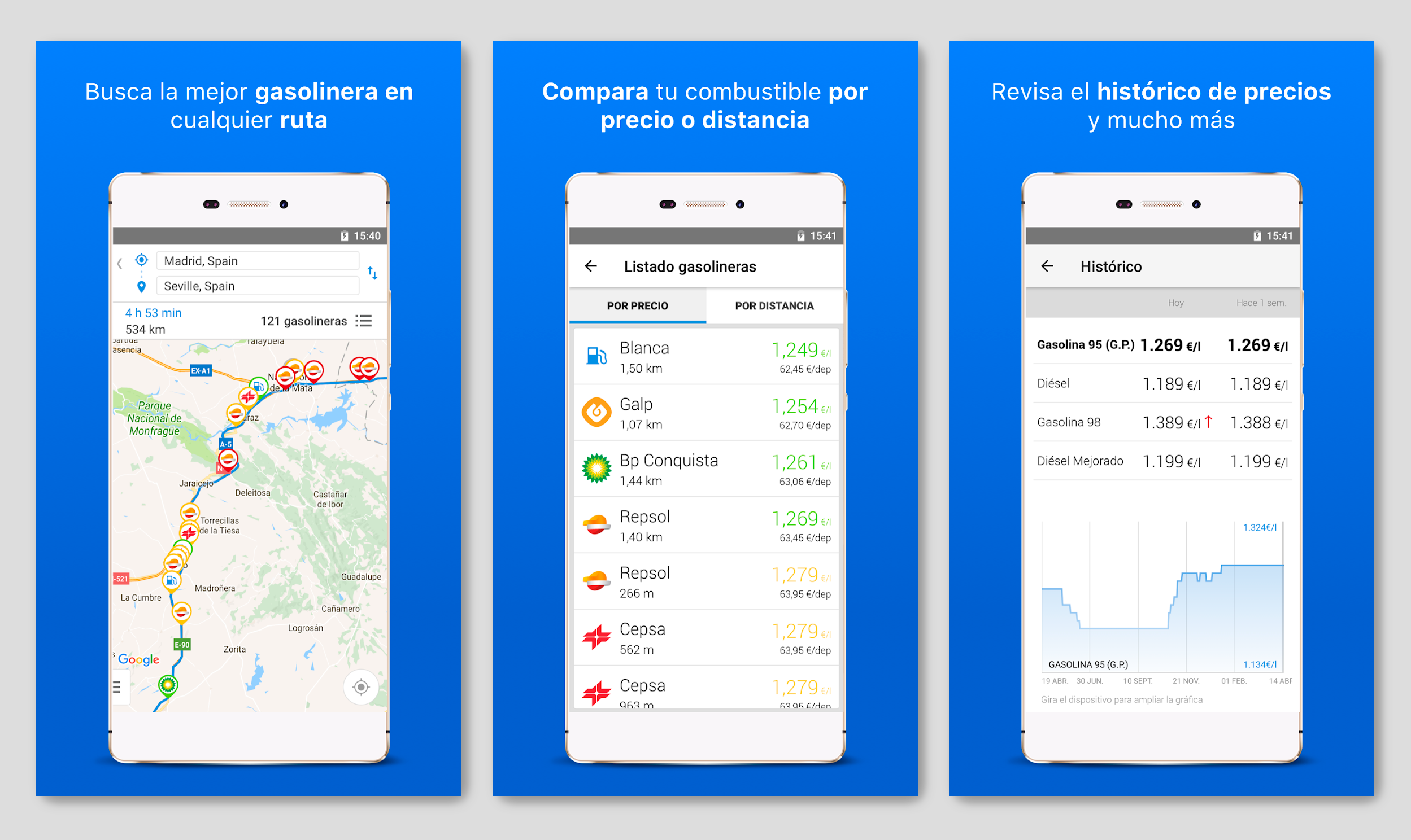 Los precios de la gasolina cambian constantemente y GasAll lo tiene en cuenta. Siempre se está actualizando y los precios que refleja en la app son los que finalmente te encontrarás en la estación de servicio.