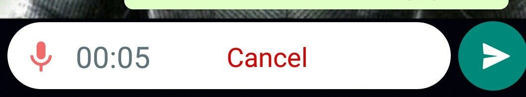 Para terminar la grabación es tan sencillo como pulsar el botón verde de enviar. Acto seguido se enviará la nota con todo lo que hayas grabado desde que pulsaste por primera vez. Si lo que quieres es cancelar la grabación y que no se envíe nada, tendrás que pulsar sobre la palabra ‘Cancelar’ que aparece en la barra de introducir texto.