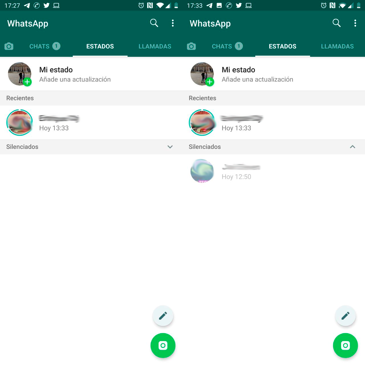 Este nuevo apartado se sitúa justo debajo del último estado que tengas pendiente por ver. Si pulsas sobre esta barra te aparecerán todos los estados que has silenciados, con la posibilidad de verlos o quitarles este silencio. La persona que los publica no sabrá que has realizado esta acción, por lo que no debes preocuparte por nada y silenciar a todo aquel que creas conveniente.