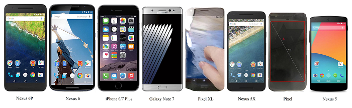 La noticia que os traemos hoy es que en internet se ha filtrado una foto nueva de lo que sería los nuevos dispositivos de Google, el Pixel y Pixel XL, comparándose en dimensiones a algunos móviles muy conocidos. Entre ellos podemos ver los últimos Nexus de Google, el Samsung Galaxy Note 7 o un iPhone. Como ya se ha filtrado, el Pixel XL llevaría una pantalla de 5,5 pulgadas, y sería más pequeño que el anterior Nexus 6p, que el iPhone 6 Plus y que el Note 7. De estos teléfonos mencionados, solo el iPhone tiene el mismo tamaño de pantalla, porque por lo que vemos va a tener unos marcos muy grandes.