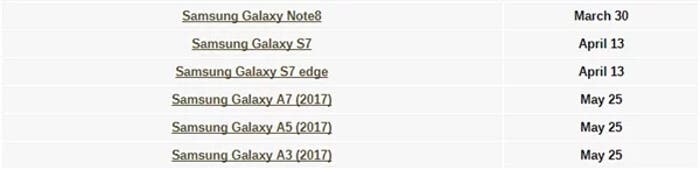 Fechas de actualización para móviles Samsung: Galaxy Note 8, Galaxy S7 y los Galaxy A 2017