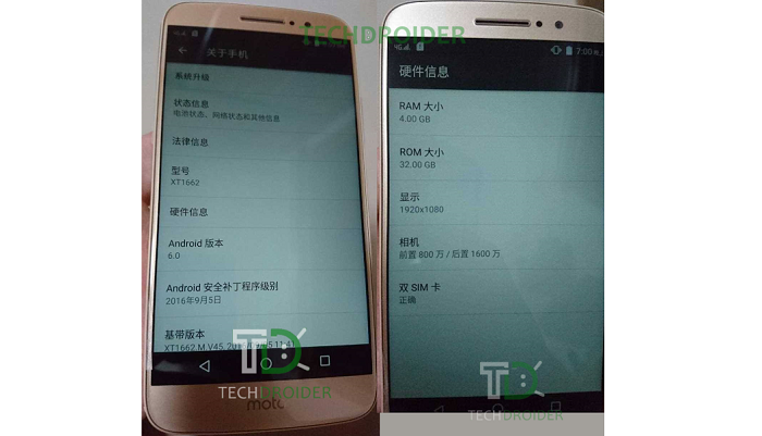 El nuevo Motorola Moto M se ha vuelto a filtrar después de que lo viésemos en TENAA. Esta vez han sido dos imágenes gracias a la página TechDroider en las cuales podemos ver varias cosas. Lo primero, el nombre del modelo será XT1662, y no tendrá un sensor de huellas. Llevará 4 GB de memoria RAM y 32 GB de almacenamiento, con una resolución FullHD. Otros datos que no salen en la imagen pero si tenemos, es que su pantalla será de 5,5 pulgadas, y vendrá con un procesador MediaTek MT6755. No sabemos todavía fecha de salida ni precio, pero su resolución, su procesador y la falta de sensor de huellas nos hace ver que será un dispositivo de gama media, y que rondará los 300 euros.