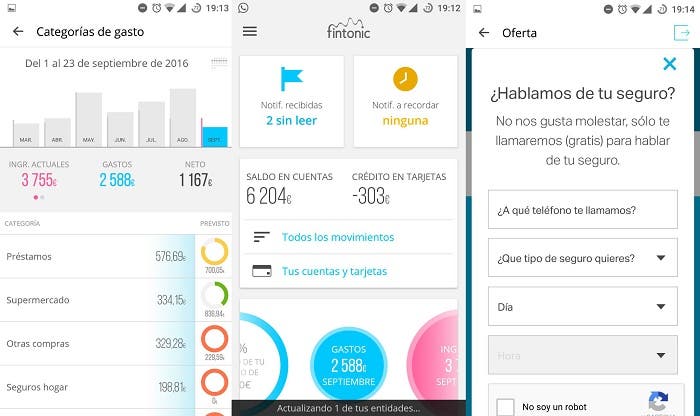 Hemos estado probando Fintonic un tiempo para llevar una mejor gestión de nuestras finanzas, algo que puede a primera vista no parecer muy útil, pero cuando lo llevamos utilizando varios días nos damos cuenta de lo útil que llega a ser. Estamos hablando de una aplicación que ganó el Premio Innovación Móvil del Sector Financiero de Google, premio que reconoce las mejores ideas en un dispositivo móvil. Fintonic nos permite gestionar nuestro dinero, gestionar todas las cuentas de diferentes bancos que tengamos, nos avisa de cargos inesperados, domiciliaciones y demás. Es decir, todo movimiento que se haga o que se vaya a hacer en tu cuenta te notificará.