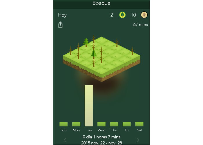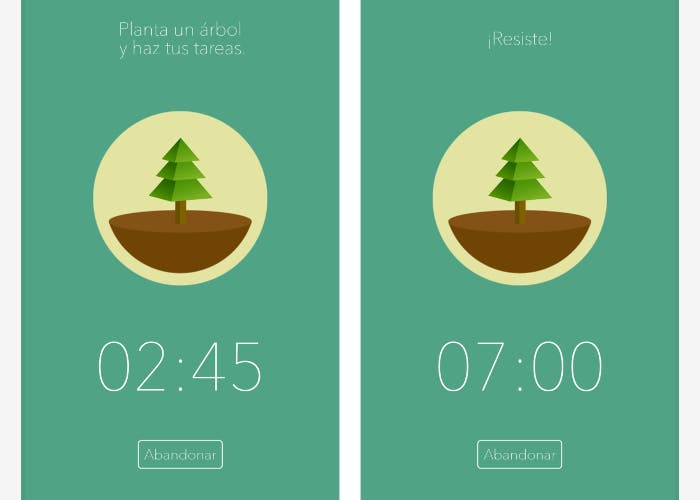 Esta aplicación la verdad es que es bastante fácil de utilizar y está muy bien pensada. El objetivo consiste en plantar un árbol y no dejar que este se muera. Si sobrevive pasará a formar parte del jardín de ese mismo día (por ejemplo el del lunes), y al día siguiente pasará lo mismo pero con un jardín diferente (el del martes). Fácil, ¿verdad? La dificultad no está en el cómo se utiliza, sino en el cómo no matar el árbol. Bien, el árbol morirá si se te ocurre salir de la aplicación, por lo que tendrás que dejar tu dispositivo bloqueado y no tocarlo en el tiempo que hayas preestablecido.