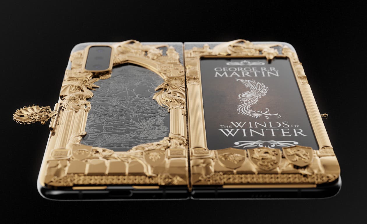Solo habrá 7 personas en el mundo que puedan comprar el Samsung Galaxy Fold edición Juego de Tronos. La empresa que los personaliza ha decidido fabricar solo esta cantidad de dispositivos, algo normal dado su alto precio. El dispositivo con la personalización cuesta algo más de 8.000 dólares. Sabiendo que el terminal tiene un precio de unos 2.000 dólares podemos sacar en claro que Caviar ingresa unos 6.000 dólares por la personalización.