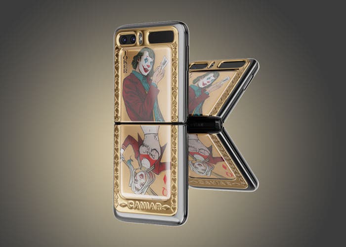 Ya hemos hablado en varias ocasiones sobre un terminal que incluso se ha filtrado en un vídeo real a pleno funcionamiento, sin embargo, esta vez os vamos a contar algo completamente inaudito. El Galaxy Z Flip aún no se ha confirmado y Caviar ya ha hecho una versión de lujo. Se trata de un modelo especial fabricado con oro y piedras preciosas en el que Joker y Harley Quinn aparecen serigrafiados en su carcasa. La firma rusa habría decidido apostar por una personalización realmente novedosa con la que quiere seguir atrayendo las miradas de los usuarios más pudientes.