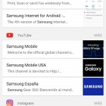 Lo mismo ocurre cuando introducimos el nombre de Samsung, por ejemplo. Nos aparecen nuestras aplicaciones que tengamos instaladas de la compañía, pero también correos que tengan que ver con ella, búsquedas que hemos hecho en Google Chrome o un enlace para seguirla en redes Instagram o YouTube.
