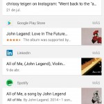 Una vez tengamos el acceso directo en nuestra pantalla bastará con pulsarlo para que se habrá la aplicación de búsquedas de Google en el apartado de «En aplicaciones». Una vez estemos ahí, simplemente debemos buscar lo que queramos, y Google nos mostrará resultados entre todas las aplicaciones que tenemos. Por ejemplo, si buscamos una canción, nos aparecerán resultados para verla en YouTube, descargarla en Google Play Music o escucharla en Spotify. Además, depende de qué canción o artista sea, nos aparecerán links a sus redes sociales para que le sigamos si lo vemos necesario.