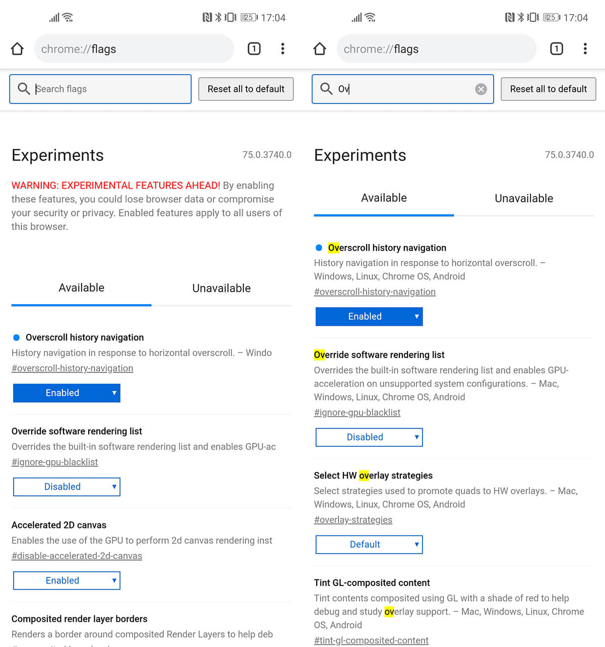 Hasta ahora, para hacer esto necesitábamos ir al menú de tres puntos de la esquina superior derecha y tocar la flecha correspondiente. Bueno, técnicamente tenemos que seguir haciéndolo en las versiones más estables, ya que de momento la navegación por gestos solo está disponible para la versión de Google Chrome Dev y Canary. Por defecto no está activada está opción y no está muy a la vista que digamos, pero te enseñamos a activarla.