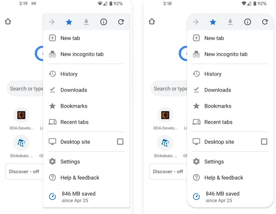 Si actualizas el navegador a la versión 90 y realizas estos pasos podrás ver que el menú desplegable lateral de Google Chrome cambia de diseño. Adopta el estilo de Material You con unas esquinas mucho más redondeadas. El cambio es menor, pero es una de las primeras cosas de Android 12 que cualquier usuario puede tener en su dispositivo.