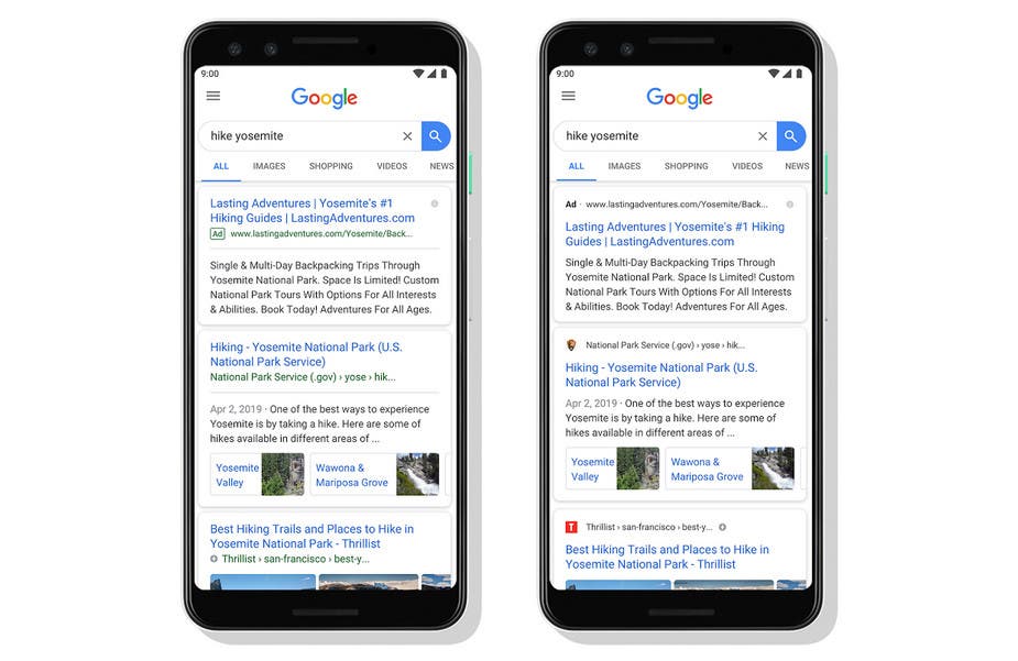 Las novedades no solo llegan a las compañías colindantes, el buscador de Google también se renueva cada cierto tiempo. En este caso hablamos de unas novedades que afectan directamente al diseño de los resultados web para móviles. A partir de ahora, las búsquedas tienen una nueva estética en la que se muestra tanto el nombre como el icono de cada una de las páginas web.