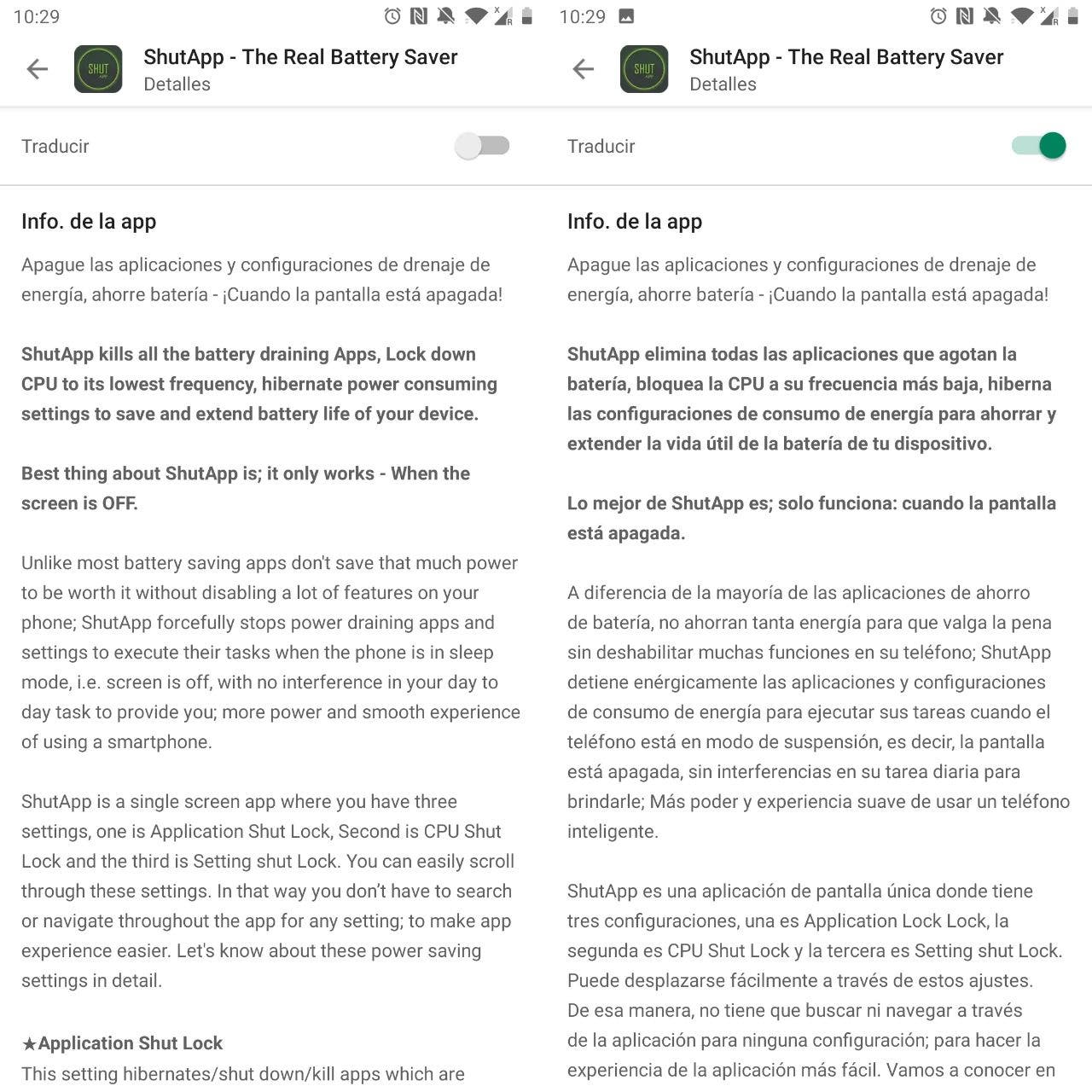 La función no necesita de la aprobación de los desarrolladores, por lo que se extiende a todo el catálogo de aplicaciones que hay en Google Play. En el caso de España y Latinoamérica es algo realmente útil, pues millones de aplicaciones tienen una descripción en inglés que hasta ahora podía ser una barrera para descargarlas.