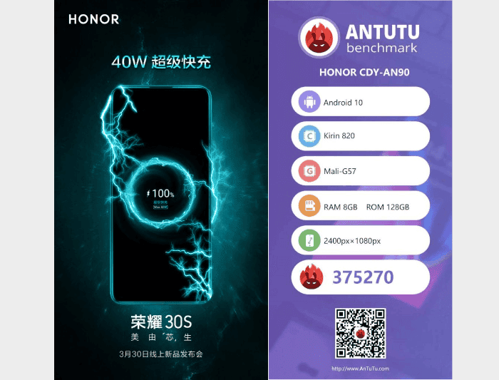 El HONOR 30S casi alcanza los 400K puntos en AnTuTu y fecha de lanzamiento