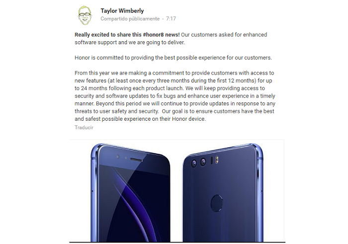 La noticia que nos llega hoy es que el director de comercio electrónico de Huawei en Estados Unidos, ha hecho un comentario en su página de Google+ sobre la política de actualizaciones de la gama Honor. En este comentario afirman que van a mejorar todo lo posible las actualizaciones de la submarca Honor, y prometen que tendrá actualizaciones cada tres meses mínimo. Esto es un gran movimiento ya que siempre se le ha reprochado a Huawei lo mucho que tarda en actualizar sus terminales, y así hará sentir a sus usuarios que no deja de lado ningún terminal.