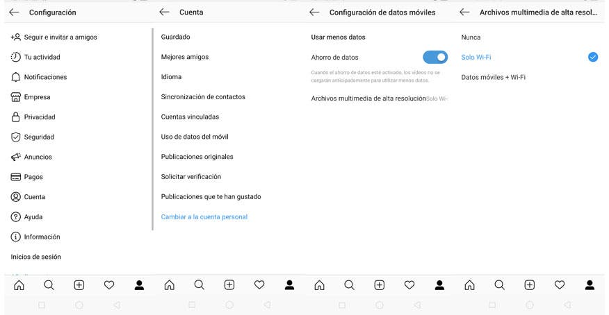 Sí, hay mucha gente que ya cuenta con datos ilimitados, pero no todos podemos presumir de ello. Este artículo está dedicado a esas personas que aun cuentan con las tarifas de toda la vida y quieren ahorrar el máximo de datos posibles. Hablamos de una especie de modo “lite” que ha integrado Instagram evitando que se carguen los vídeos o las descargas en alta resolución. De esta forma, se reduce el consumo de datos de la aplicación hasta un mínimo al que no llegaríamos con el funcionamiento tradicional. Es decir, Instagram nos da la posibilidad de controlar cuantos datos queremos gastar en cada momento.