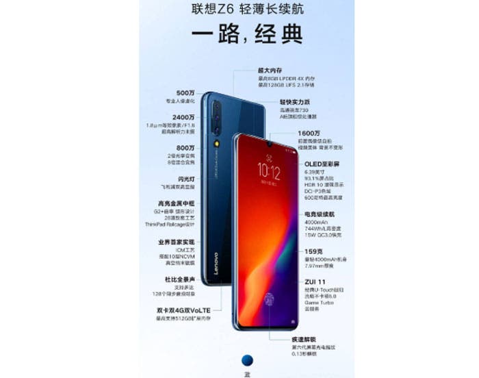 Según las filtraciones, el Lenovo Z6 llegará al mercado con un panel OLED de 6,39 pulgadas que aprovecha un 93% del frontal y puede conseguir un brillo máximo de 600 nits. La resolución es de 2.340 x 1.080 píxeles y lo que más destaca es la integración de una tasa de refresco de 120 Hz. Todo ello, potenciado por el Snapdragon 730 de Qualcomm, un procesador que aportará ese punto de fuerza para los amantes de los videojuegos. A nivel de configuración nos encontraremos con 8 GB de RAM y 128 GB de almacenamiento interno en la versión más destacada. Sin olvidarnos de una batería de 4.000 mAh que llelga con carga rápida de 15 W.