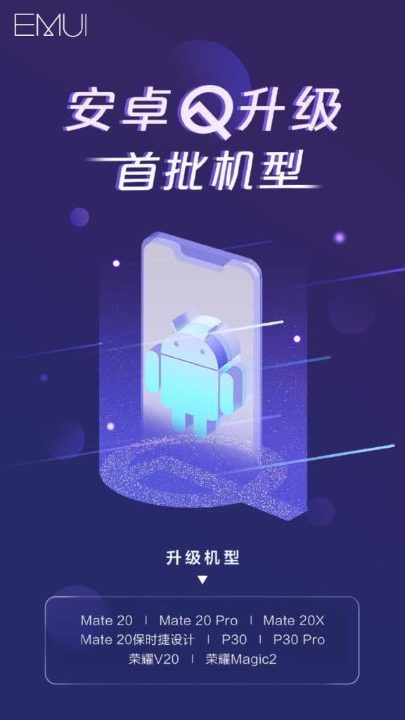 La compañía ha sido la primera en atreverse con las promesas. Huawei ha lanzado un teaser en China con noticias muy importantes. Confirma cuáles serán los primeros móviles de su catálogo en obtener Android 10 Q. Por suerte también se cuela algún Honor en dicha lista. Por desgracia no podemos confirmar la fecha de cada uno, simplemente que Huawei ya ha confirmado la llegada del sistema. Si todo sale como debe en los meses de octubre o noviembre Huawei debería tener los siguientes móviles en Android Q.