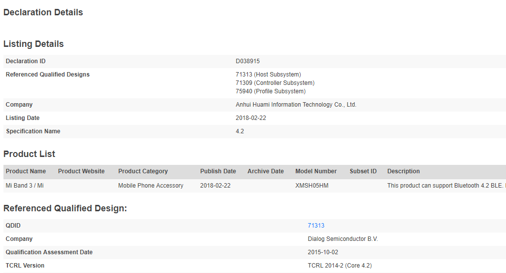 Sí, por fin nos llegan noticias de la famosa pulsera de Xiaomi. El chivato ha saltado hoy tras la certificación Bluetooth del gadget en cuestión, el cual se confirma que se tratará de la versión 4.2, si bien se esperaría la inclusión del ya presente Bluetooth 5.0.